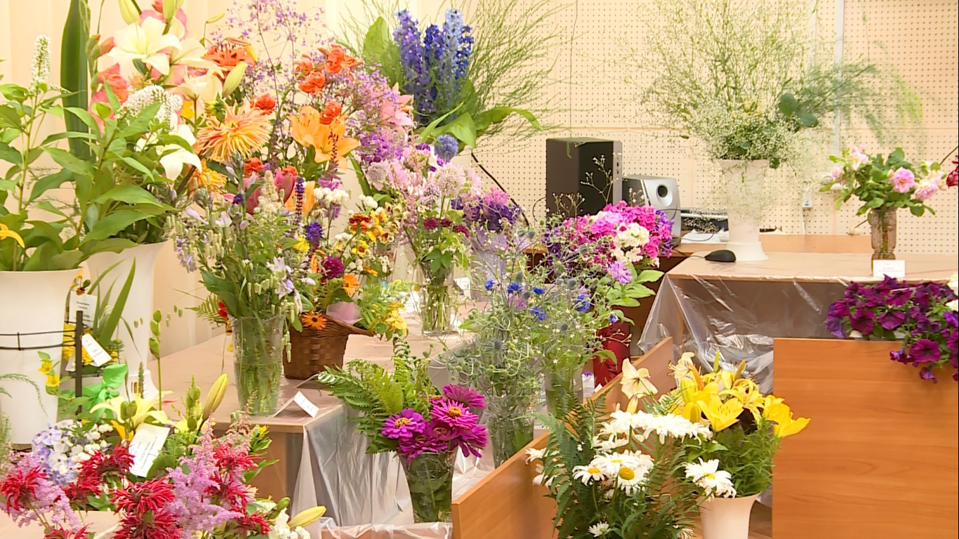На открытии представили свои работы более 70 участников. Каждому хотелось показать долгую и кропотливую работу, поэтому садоводы принесли сразу по несколько композиций. Ассортимент выставки непредсказуем каждый год. Несмотря на то, что экспозиция проходит в основном в августе, участники стараются выбирать самые разнообразные и уникальные цветы. Роскошные лилии, яркие герберы, жаркие подсолнухи и многое другое радует глаз гостей выставки в этом году. Организаторы постарались и над оформлением выставочного зала, чтобы посетителям хотелось оставить впечатления на памятных фотографиях.