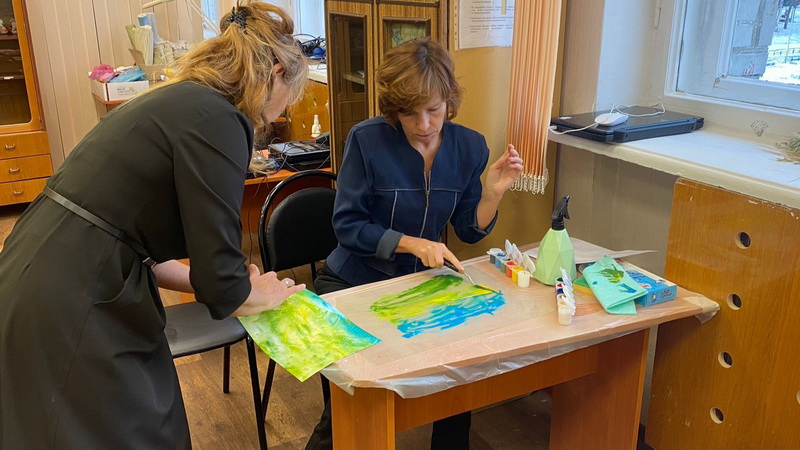 Прекрасные участницы мастер-класса попробовали делать яркие фоны в технике монотипия, создали оригинальные картины и получили массу позитивных эмоций